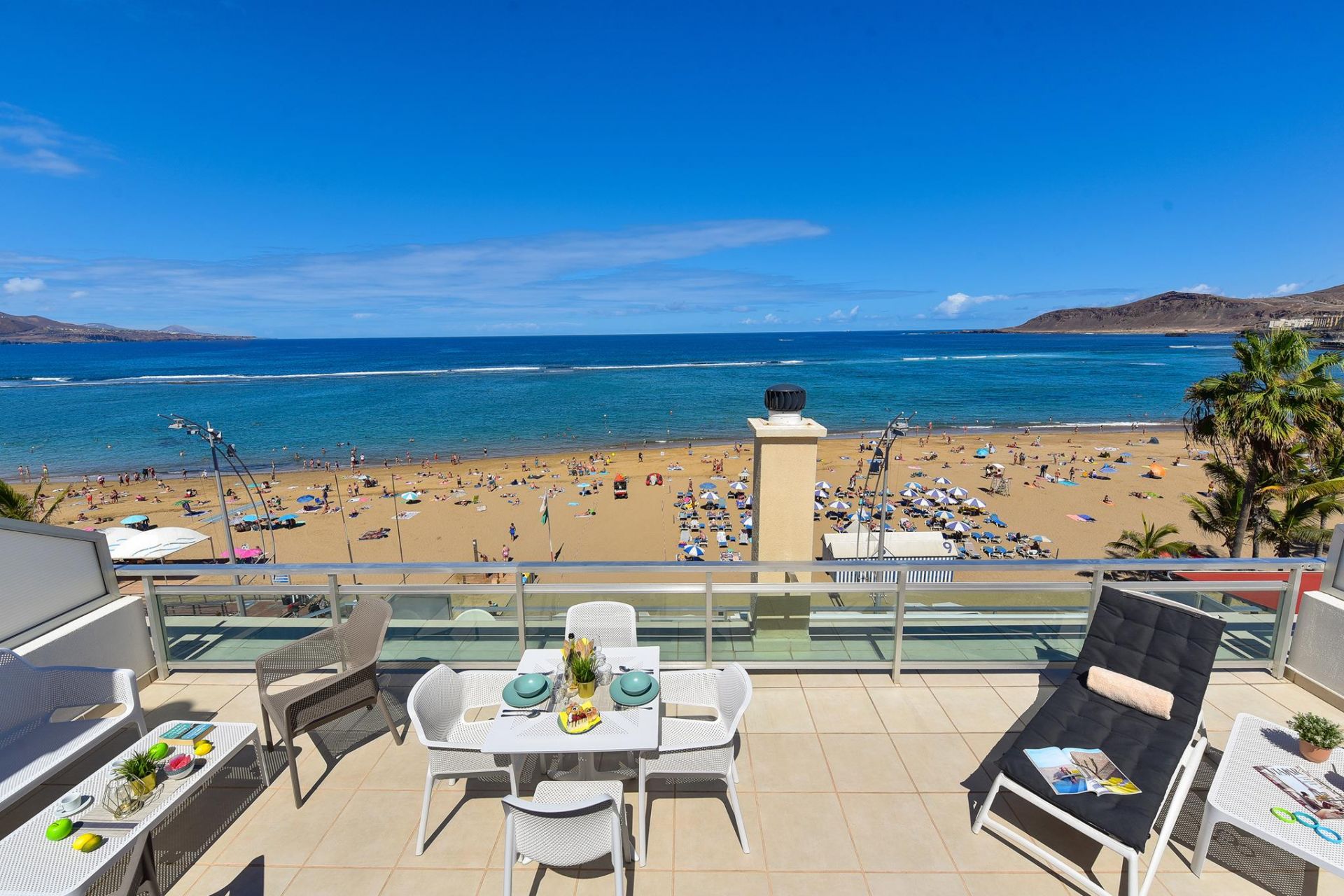 Amplio apartamento para 2 personas en la playa de Las Canteras, amplia terraza con impresionantes vistas a la playa y al océano.