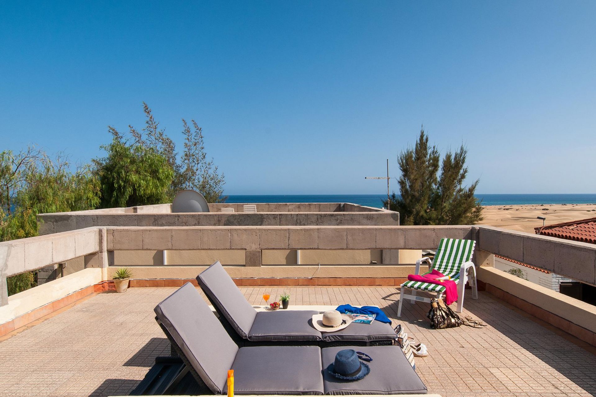 Bungalow Casa Verde está situado en el mismo paseo de las Dunas de Maspalomas, bonitas vistas al mar y las dunas desde la azotea. 2 dormitorios para alojar hasta a 3 adultos.