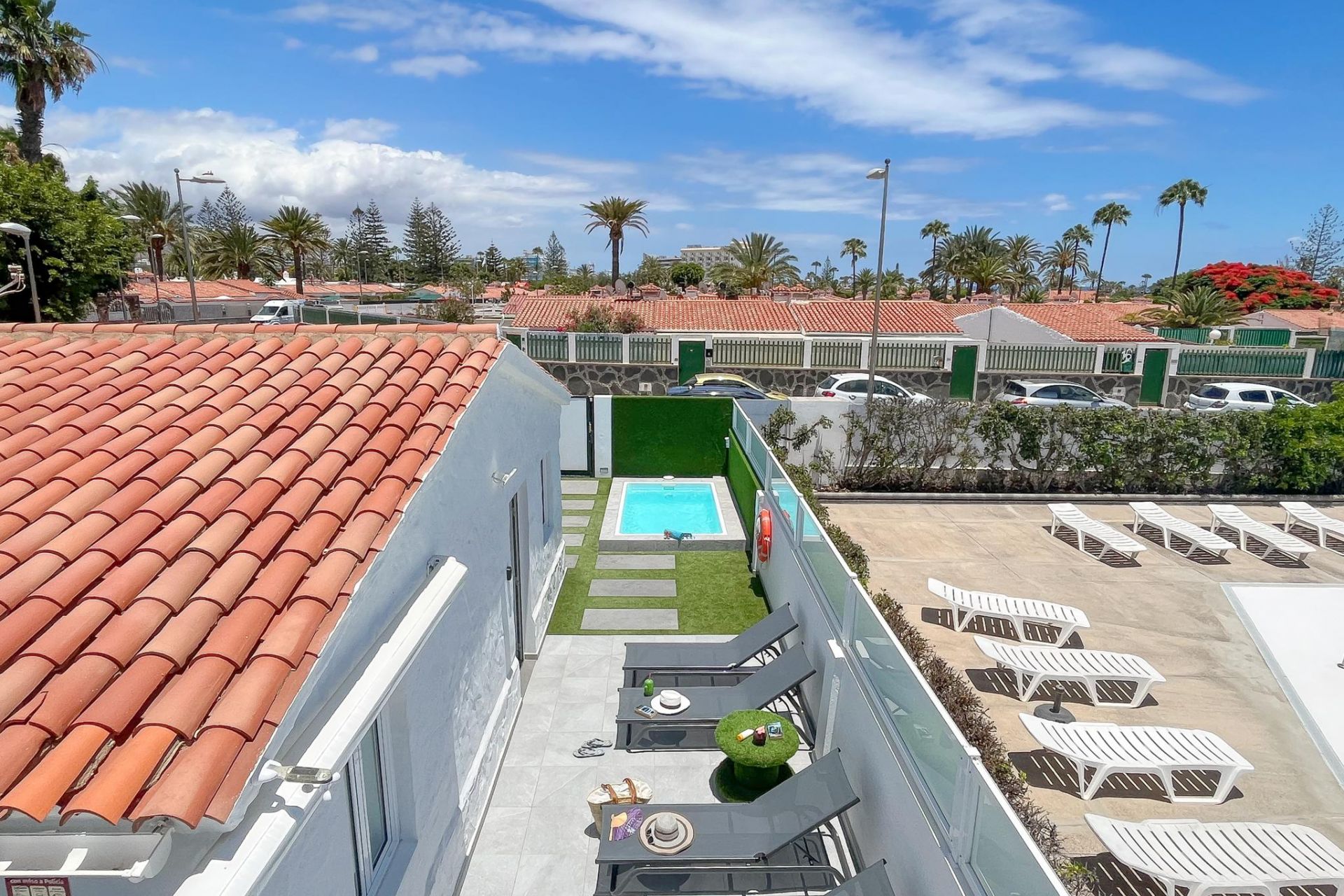 Bungalow Macaronesia es una maravillosa propiedad con piscina privada y piscina comunitaria en Playa del Inglés y capacidad hasta 4 personas.