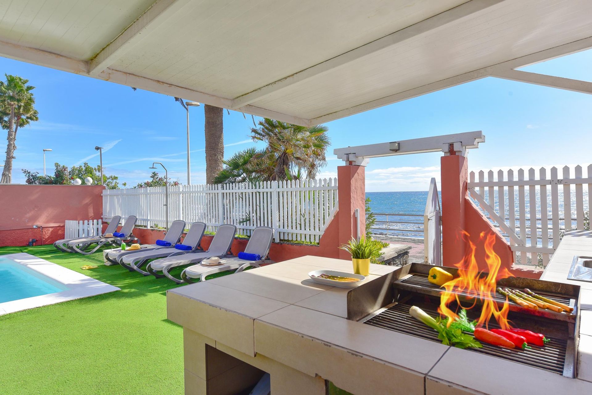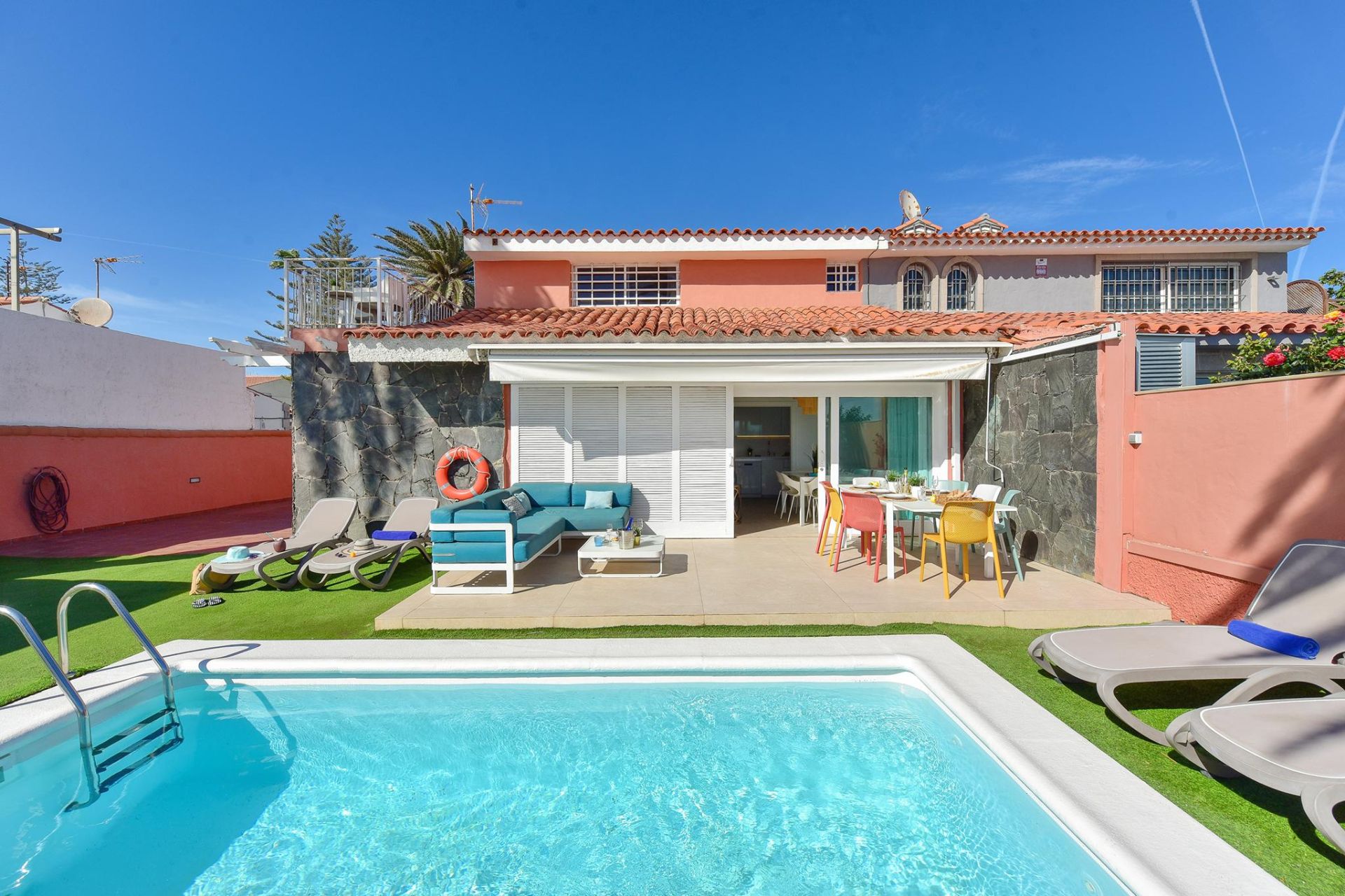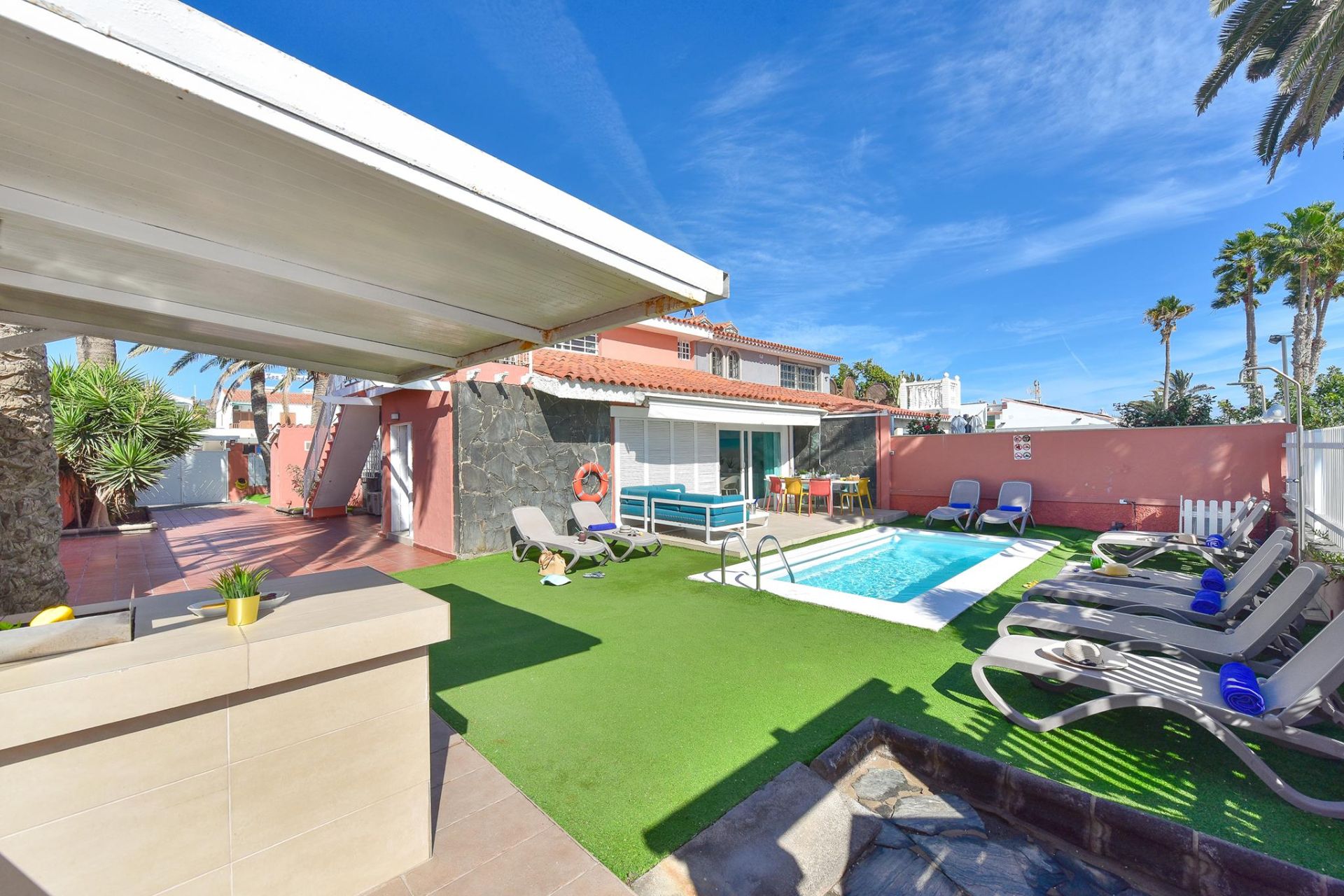 Bienvenidos a Villa El Veril, una impresionante propiedad en primera línea de playa en el sur de Gran Canaria. Con 5 dormitorios, 4 baños, una piscina privada climatizable (con suplemento) y acceso directo al paseo marítimo y a la playa, esta exclusiva villa ofrece alojamiento para hasta 10 huéspedes con total comodidad y estilo.