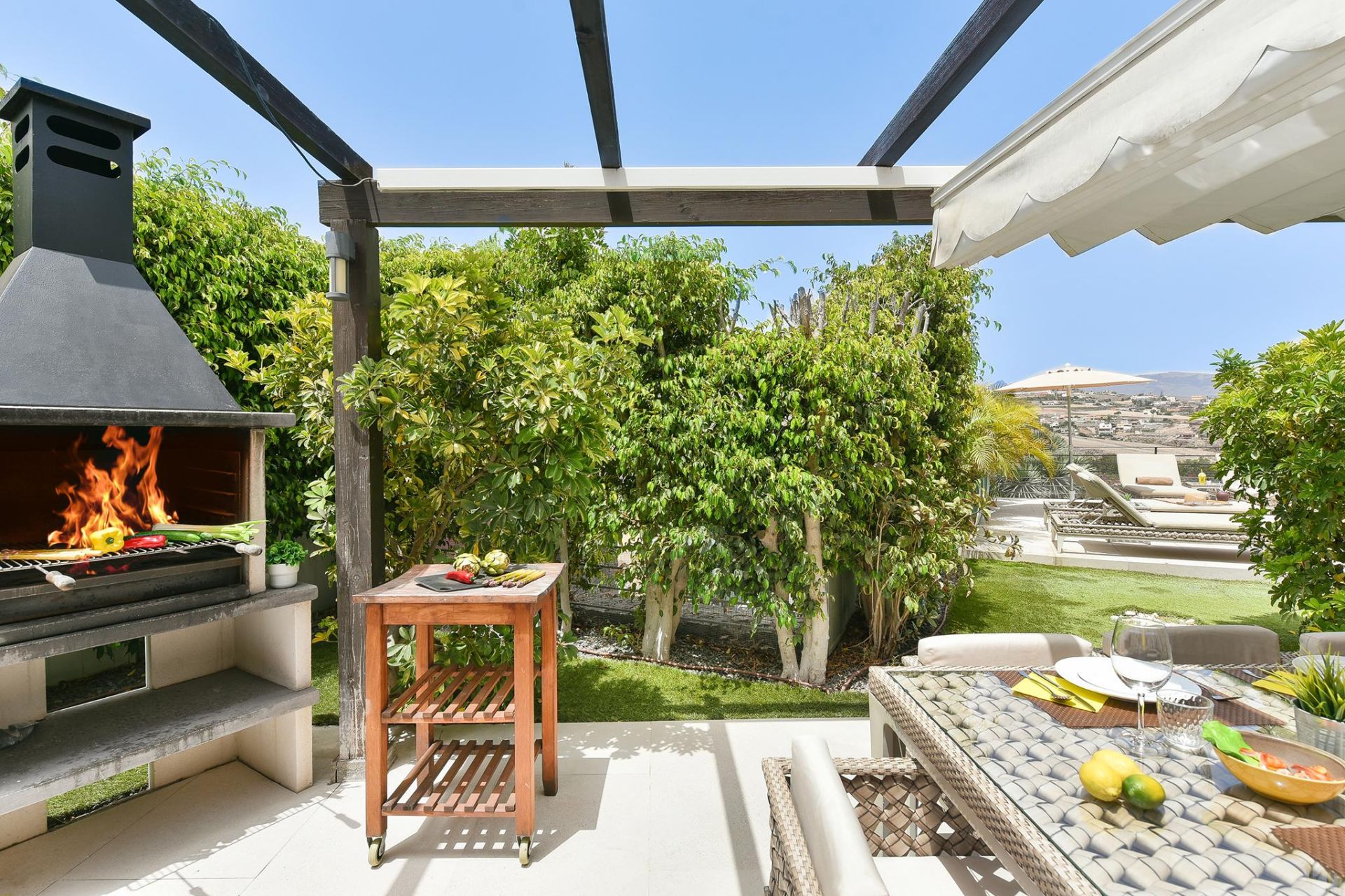 - Zona de comedor exterior, barbacoa y hamacas
