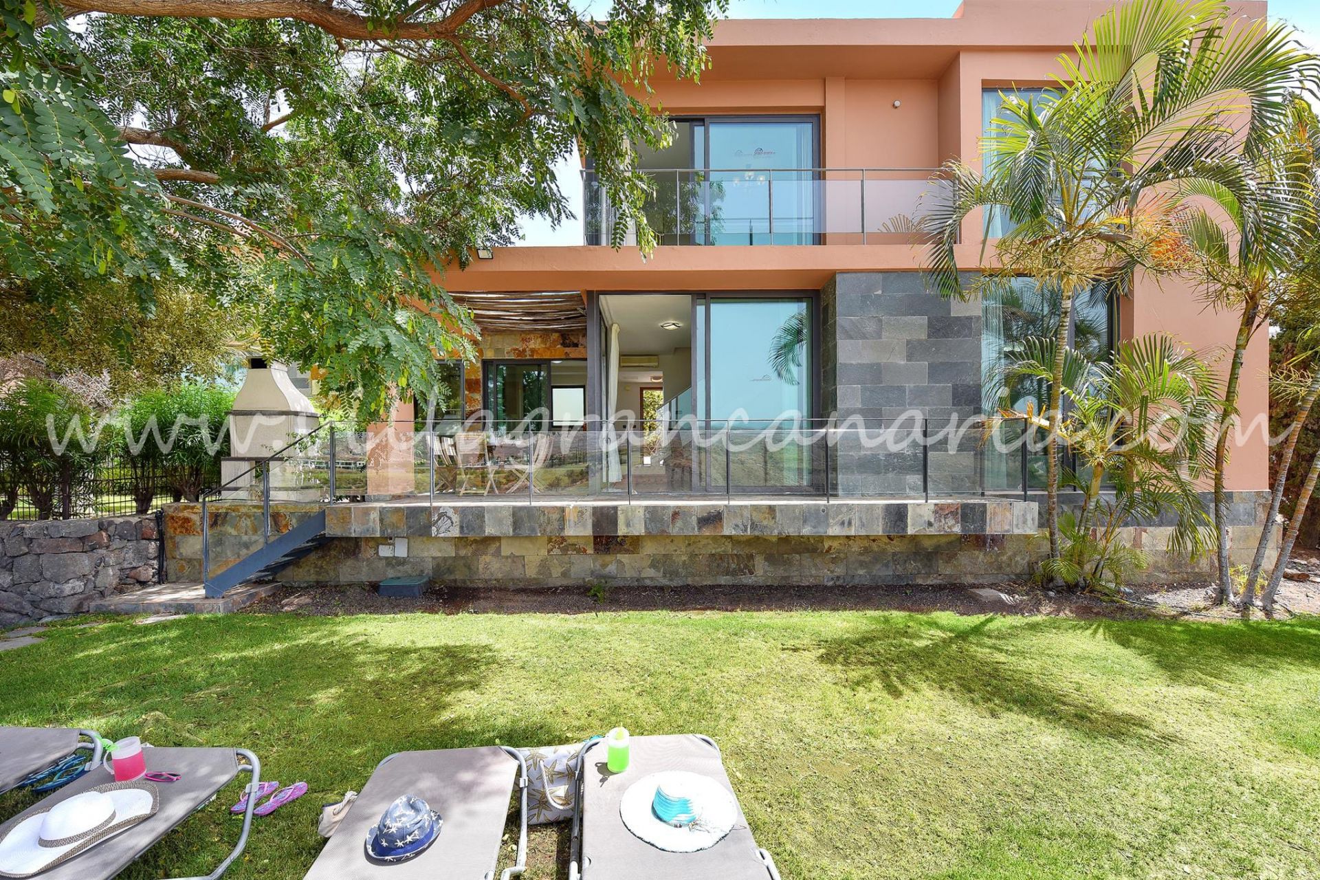 En el exterior destaca la terraza cubierta con zona de comedor al aire libre, y la zona de jardín con cómodas tumbonas.