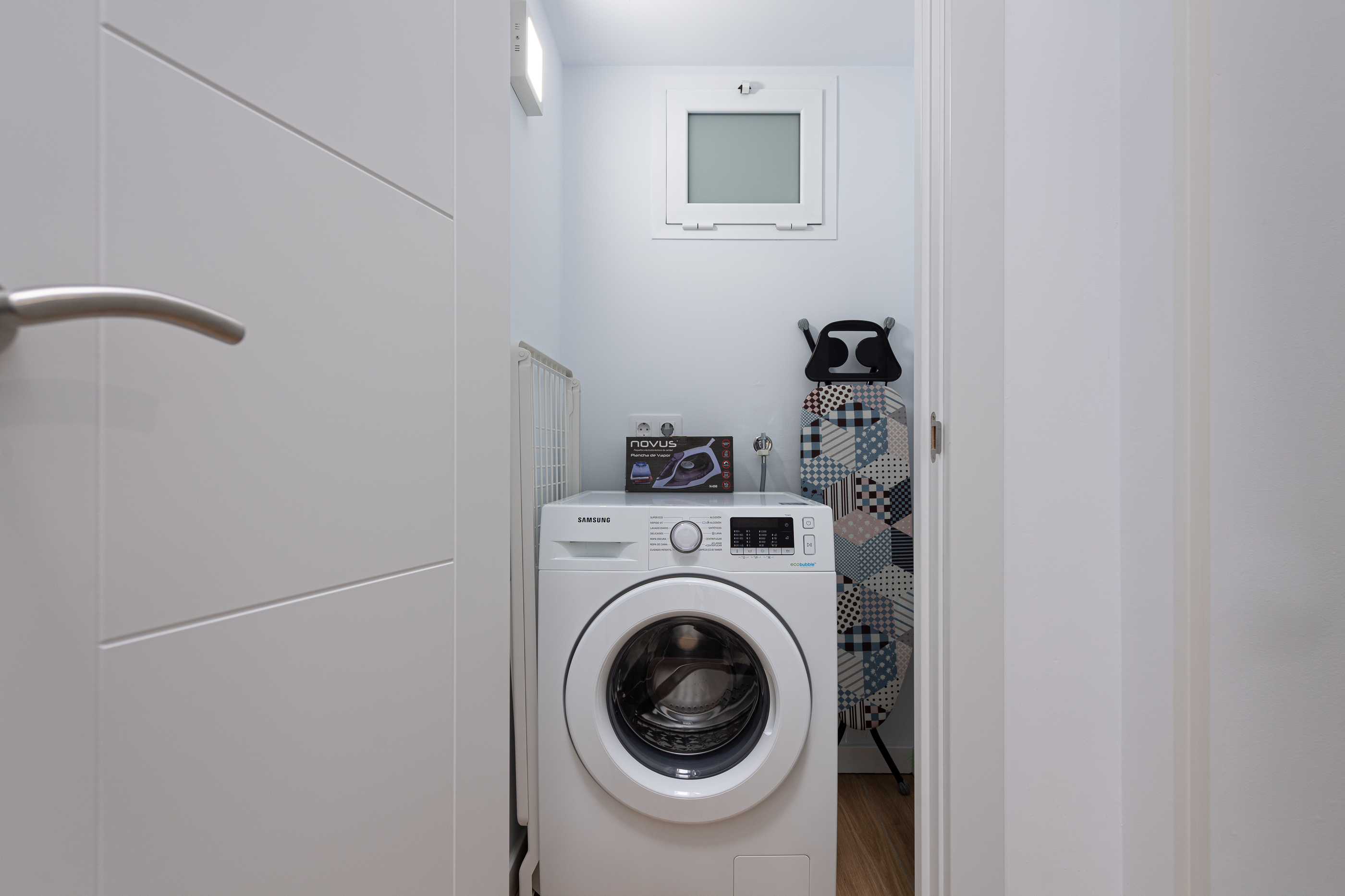 Sie bietet Platz für 2 Personen und verfügt über 1 Schlafzimmer, eine in das Wohnzimmer integrierte Küche, ein Badezimmer und einen Waschmaschinenraum.