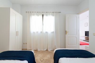 Das Haus verfügt über zwei klimatisierte Schlafzimmer, die beide modern und komfortabel eingerichtet sind. Ein Schlafzimmer ist mit einem Doppelbett (1,60 m breit), einem Ankleidezimmer und einem Badezimmer ausgestattet, das andere mit zwei Einzelbetten (je 0,9 m breit) mit Qualitätsbettwäsche, die den Gästen einen erholsamen Schlaf garantieren. Darüber hinaus gibt es Einbauschränke, die reichlich Stauraum bieten.
