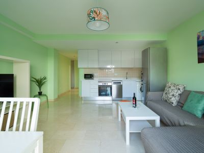 Start the day enjoying a cup of coffee on the cosy balcony while taking in the picturesque views of the beach. In the evening, relax on the comfortable sofa, enveloped in the tranquil sound of the waves, or catch up on your favourite sports broadcasts on the state-of-the-art flat-screen TV.